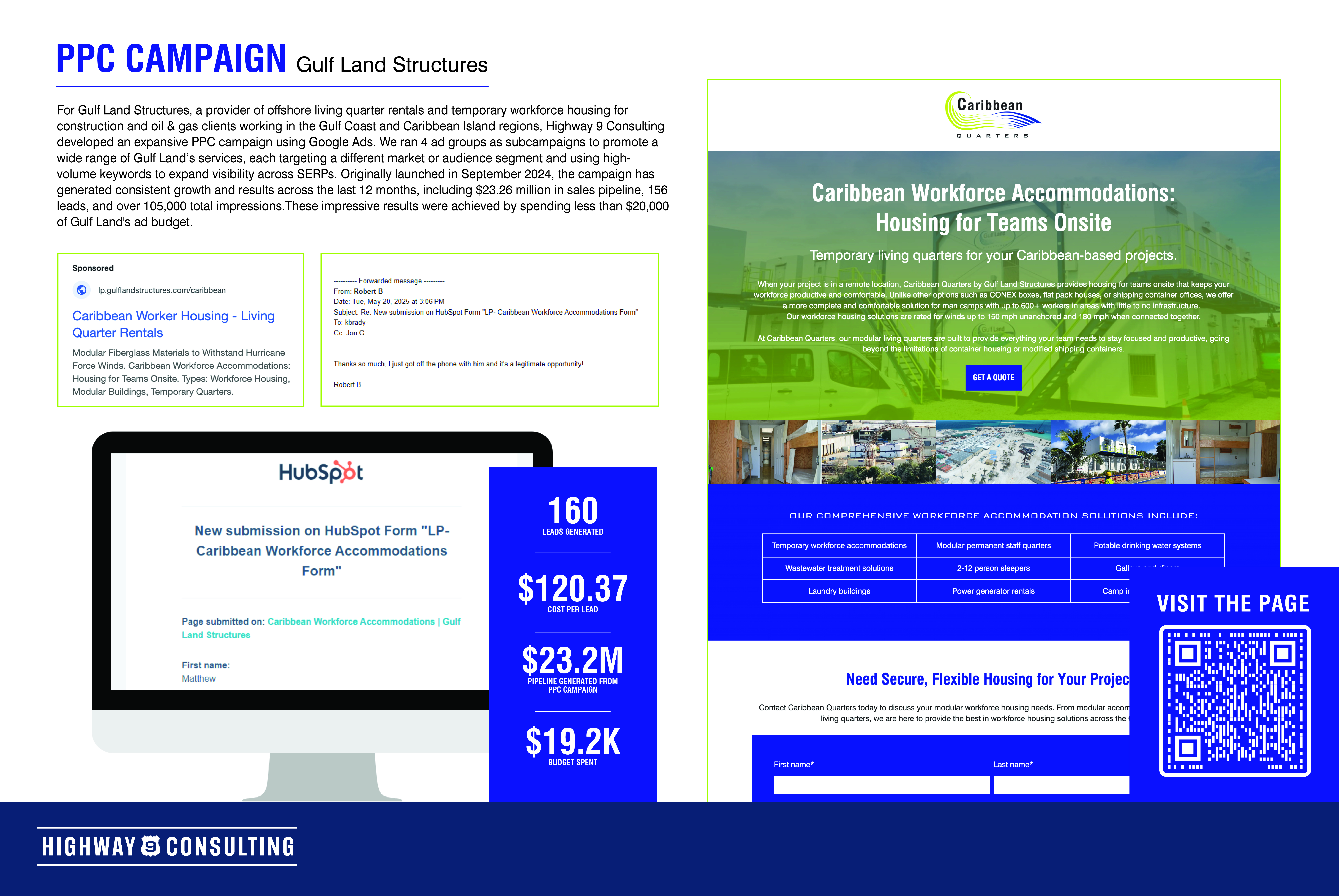 To raise awareness and generate qualified leads, Highway 9 launched a multichannel campaign spanning pay-per-click (PPC) advertising, email marketing, social media, SEO updates, and a dedicated landing page. Keyword-driven messaging focused on Texas boiler inspections and compliance, directing high-intent prospects to request quotes and inspections.